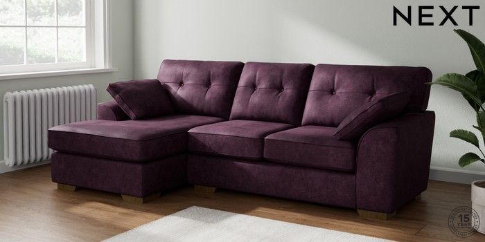 7.2.10 Buy Stamford Buttoned Back Medium Sofa Chaise - Left Hand Plush Chenille Dark Plum Purple Large Square Angle - Mid from the Next UK online shop Click here to use our accessible website