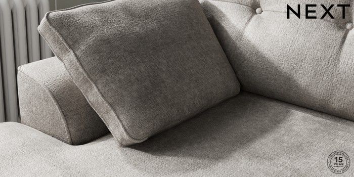 7.2.10 Buy Stamford Buttoned Back Medium Sofa Chaise - Left Hand Plush Chenille Light Grey Large Square Angle - Brushed Brass from the Next UK online shop Click here to use our accessible website
