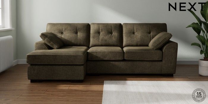 7.2.10 Buy Stamford Buttoned Back Medium Sofa Chaise - Left Hand Plush Chenille Moss Green Large Square Angle - Dark from the Next UK online shop Click here to use our accessible website