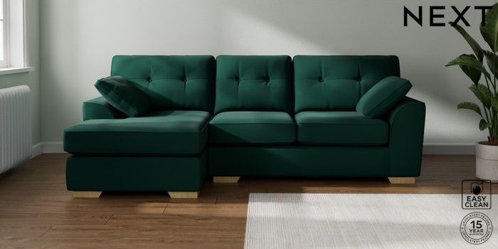 7.2.6 Buy Stamford Buttoned Back Medium Sofa Chaise - Left Hand Plush Velvet Easy Clean Bottle Green Large Square Angle - Light from the Next UK online shop Click here to use our accessible website