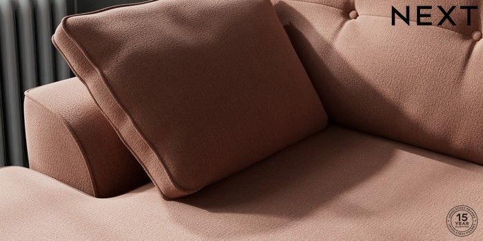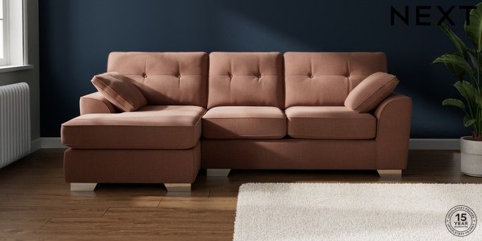 7.2.10 Buy Stamford Buttoned Back Medium Sofa Chaise - Left Hand Relaxed Linen Look Light Rust Brown Large Square Angle - Chrome Metal from the Next UK online shop Click here to use our accessible website