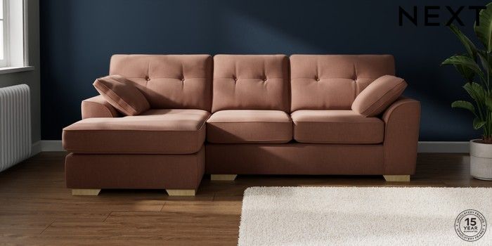 7.2.10 Buy Stamford Buttoned Back Medium Sofa Chaise - Left Hand Relaxed Linen Look Light Rust Brown Large Square Angle - Light from the Next UK online shop Click here to use our accessible website