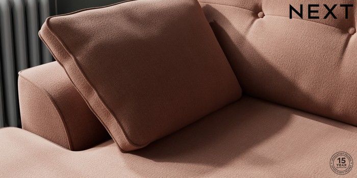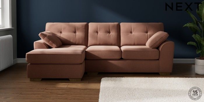7.2.10 Buy Stamford Buttoned Back Medium Sofa Chaise - Left Hand Relaxed Linen Look Light Rust Brown Large Square Angle - Mid from the Next UK online shop Click here to use our accessible website
