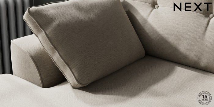 7.2.10 Buy Stamford Buttoned Back Medium Sofa Chaise - Left Hand Ripple Chenille Light Natural Large Square Angle - Gunmetal from the Next UK online shop Click here to use our accessible website