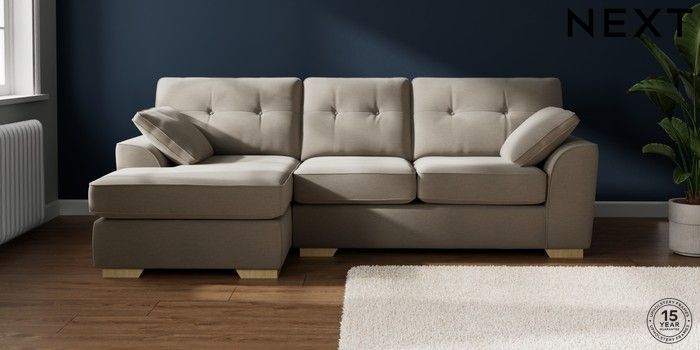 7.2.10 Buy Stamford Buttoned Back Medium Sofa Chaise - Left Hand Ripple Chenille Light Natural Large Square Angle - Light from the Next UK online shop Click here to use our accessible website