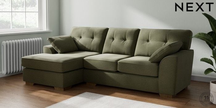 7.2.10 Buy Stamford Buttoned Back Medium Sofa Chaise - Left Hand Ripple Chenille Mid Moss Green Large Square Angle - Mid from the Next UK online shop Click here to use our accessible website