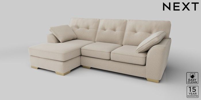 6.12.1 Buy Stamford Buttoned Back Medium Sofa Chaise - Left Hand Tweedy Blend Easy Clean Oyster Large Square Angle - Brushed Brass from the Next UK online shop Click here to use our accessible website