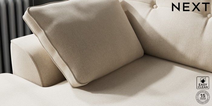 7.2.10 Buy Stamford Buttoned Back Medium Sofa Chaise - Left Hand Tweedy Blend Easy Clean Oyster Large Square Angle - Chrome Metal from the Next UK online shop Click here to use our accessible website