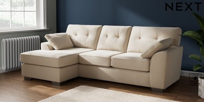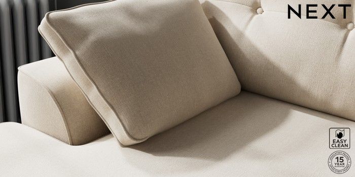 7.2.10 Buy Stamford Buttoned Back Medium Sofa Chaise - Left Hand Tweedy Blend Easy Clean Oyster Large Square Angle - Gunmetal from the Next UK online shop Click here to use our accessible website