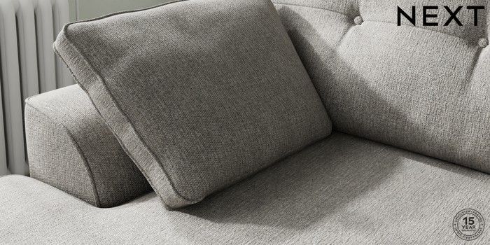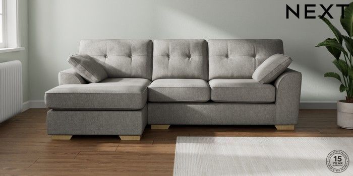 7.2.6 Buy Stamford Buttoned Back Medium Sofa Chaise - Left Hand Tweedy Chenille Mid Grey Large Square Angle - Light from the Next UK online shop Click here to use our accessible website