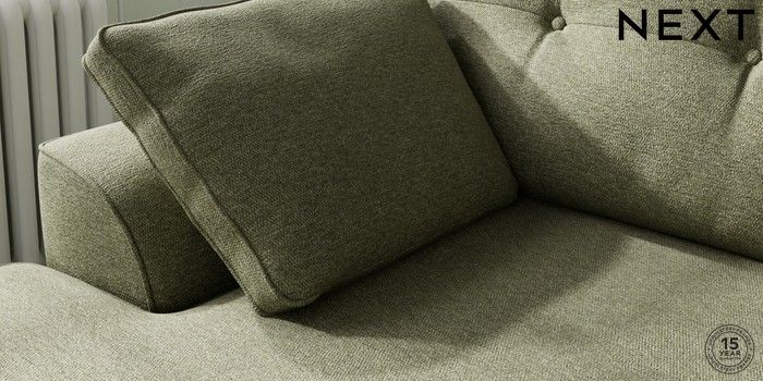 7.2.10 Buy Stamford Buttoned Back Medium Sofa Chaise - Left Hand Tweedy Chenille Mid Moss Green Large Square Angle - Chrome Metal from the Next UK online shop Click here to use our accessible website