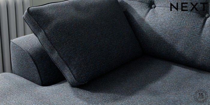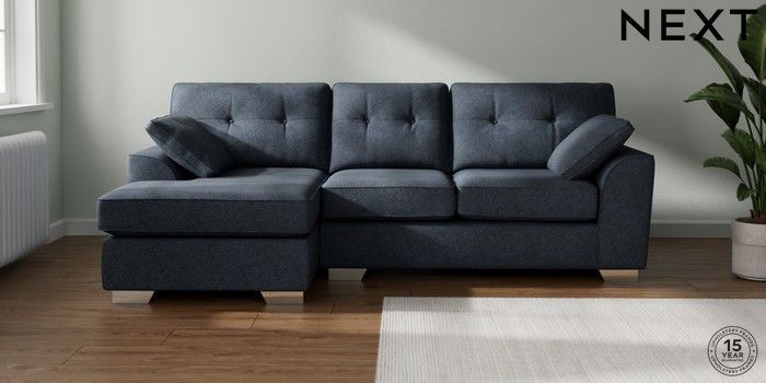 7.2.10 Buy Stamford Buttoned Back Medium Sofa Chaise - Left Hand Tweedy Chenille Navy Blue Large Square Angle - Chrome Metal from the Next UK online shop Click here to use our accessible website