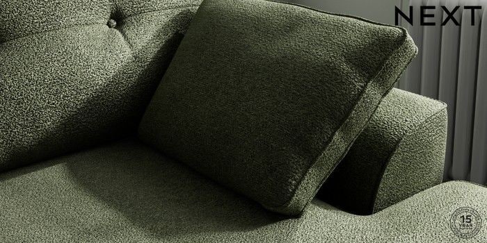 7.2.10 Buy Stamford Buttoned Back Medium Sofa Chaise - Right Hand Boucle Chenille Dark Moss Green Large Square Angle - Light from the Next UK online shop Click here to use our accessible website