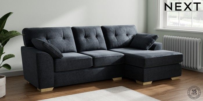 7.2.10 Buy Stamford Buttoned Back Medium Sofa Chaise - Right Hand Boucle Chenille Dark Slate Blue Large Square Angle - Light from the Next UK online shop Click here to use our accessible website