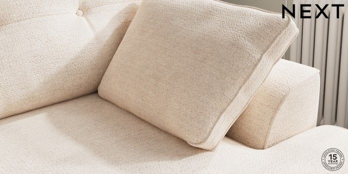 7.2.10 Buy Stamford Buttoned Back Medium Sofa Chaise - Right Hand Boucle Chenille Oyster Large Square Angle - Brushed Brass from the Next UK online shop Click here to use our accessible website