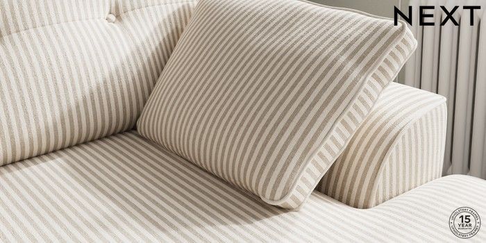 7.3.1 Buy Stamford Buttoned Back Medium Sofa Chaise - Right Hand Chenille Stripe Natural Large Square Angle - Brushed Brass from the Next UK online shop Click here to use our accessible website