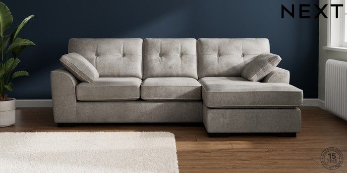 7.2.6 Buy Stamford Buttoned Back Medium Sofa Chaise - Right Hand Plush Chenille Light Grey Large Square Angle - Dark from the Next UK online shop Click here to use our accessible website
