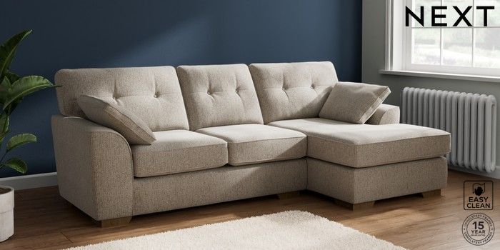 7.2.10 Buy Stamford Buttoned Back Medium Sofa Chaise - Right Hand Chunky Boucle Easy Clean Dove Large Square Angle - Mid from the Next UK online shop Click here to use our accessible website