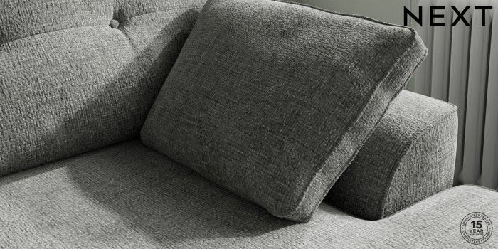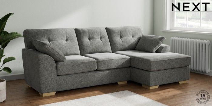 7.2.10 Buy Stamford Buttoned Back Medium Sofa Chaise - Right Hand Chunky Chenille Dark Grey Large Square Angle - Light from the Next UK online shop Click here to use our accessible website