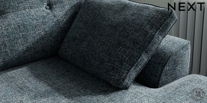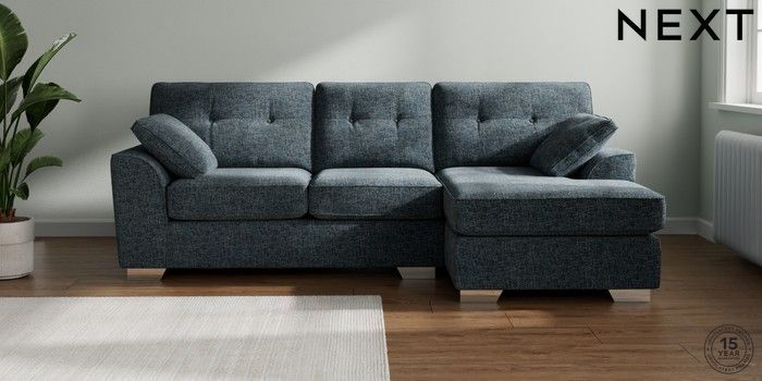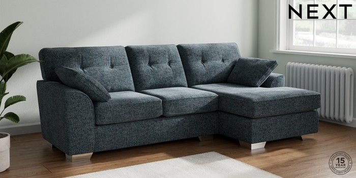 7.2.10 Buy Stamford Buttoned Back Medium Sofa Chaise - Right Hand Chunky Chenille Dark Navy Blue Large Square Angle - Chrome Metal from the Next UK online shop Click here to use our accessible website