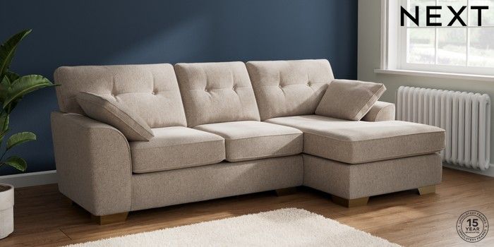 7.2.6 Buy Stamford Buttoned Back Medium Sofa Chaise - Right Hand Chunky Chenille Light Dove Large Square Angle - Brushed Brass from the Next UK online shop Click here to use our accessible website