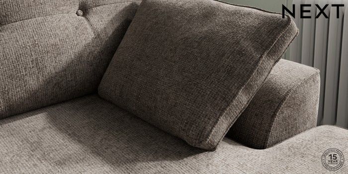 7.2.10 Buy Stamford Buttoned Back Medium Sofa Chaise - Right Hand Chunky Chenille Mink Brown Large Square Angle - Chrome Metal from the Next UK online shop Click here to use our accessible website