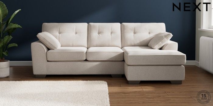 7.2.10 Buy Stamford Buttoned Back Medium Sofa Chaise - Right Hand Chunky Chenille Oyster Large Square Angle - Gunmetal from the Next UK online shop Click here to use our accessible website