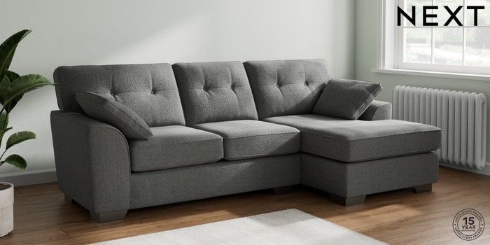 7.2.10 Buy Stamford Buttoned Back Medium Sofa Chaise - Right Hand Chunky Texture Dark Grey Large Square Angle - Gunmetal from the Next UK online shop Click here to use our accessible website