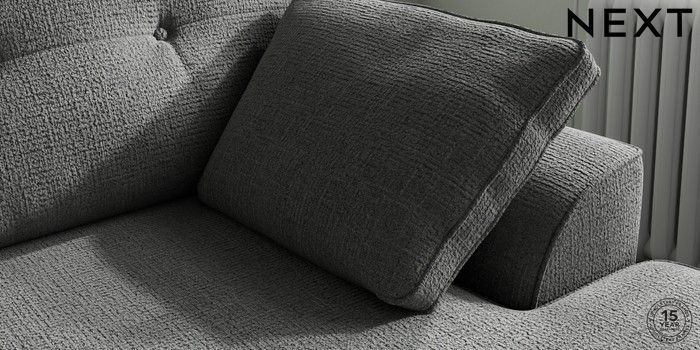 7.2.10 Buy Stamford Buttoned Back Medium Sofa Chaise - Right Hand Chunky Texture Dark Grey Large Square Angle - Light from the Next UK online shop Click here to use our accessible website