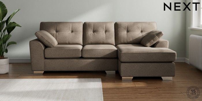 7.2.6 Buy Stamford Buttoned Back Medium Sofa Chaise - Right Hand Chunky Weave Dark Natural Large Square Angle - Chrome Metal from the Next UK online shop Click here to use our accessible website