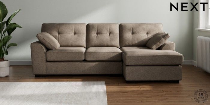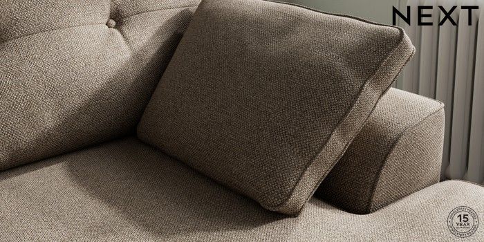 7.2.10 Buy Stamford Buttoned Back Medium Sofa Chaise - Right Hand Chunky Weave Dark Natural Large Square Angle - Dark from the Next UK online shop Click here to use our accessible website