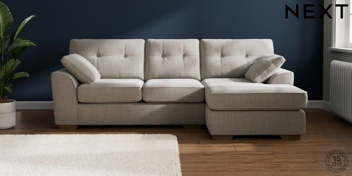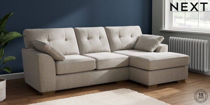 7.2.10 Buy Stamford Buttoned Back Medium Sofa Chaise - Right Hand Chunky Weave Dove Grey Large Square Angle - Mid from the Next UK online shop Click here to use our accessible website