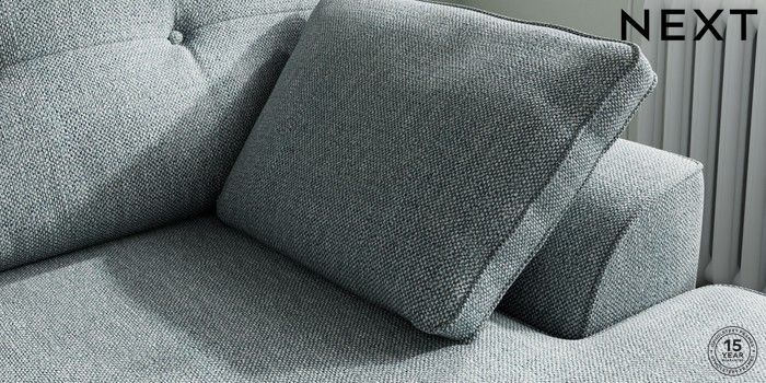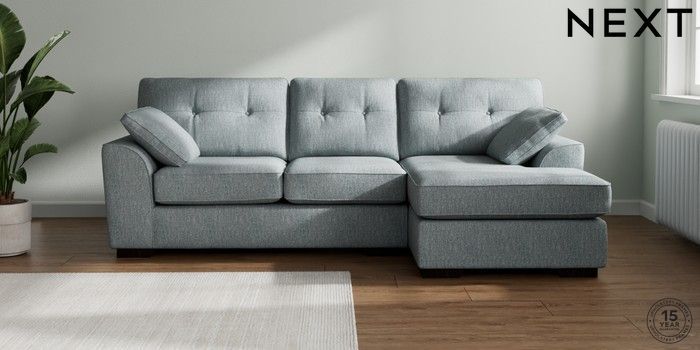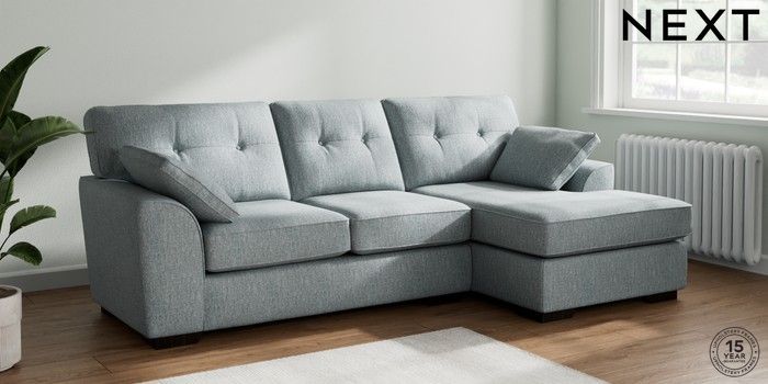 7.2.10 Buy Stamford Buttoned Back Medium Sofa Chaise - Right Hand Chunky Weave Mid Blue Large Square Angle - Dark from the Next UK online shop Click here to use our accessible website
