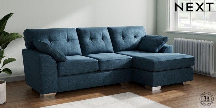 7.2.10 Buy Stamford Buttoned Back Medium Sofa Chaise - Right Hand Cotswold Chenille Dark Blue Large Square Angle - Chrome Metal from the Next UK online shop Click here to use our accessible website