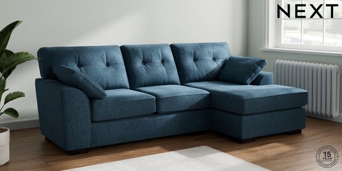 7.2.10 Buy Stamford Buttoned Back Medium Sofa Chaise - Right Hand Cotswold Chenille Dark Blue Large Square Angle - Dark from the Next UK online shop Click here to use our accessible website