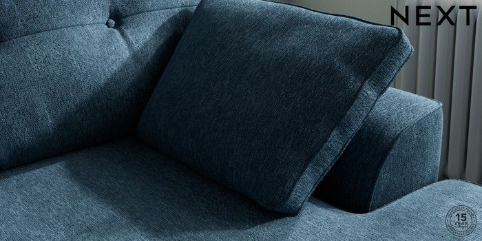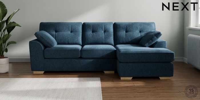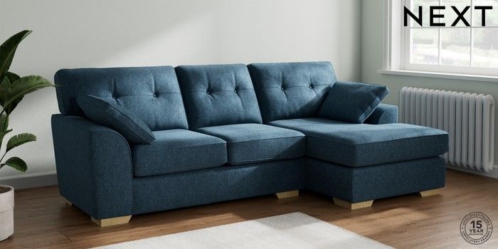 7.2.10 Buy Stamford Buttoned Back Medium Sofa Chaise - Right Hand Cotswold Chenille Dark Blue Large Square Angle - Light from the Next UK online shop Click here to use our accessible website