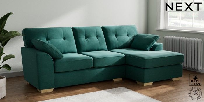 7.2.6 Buy Stamford Buttoned Back Medium Sofa Chaise - Right Hand Fine Chenille Easy Clean Dark Juniper Green Large Square Angle - Light from the Next UK online shop Click here to use our accessible website
