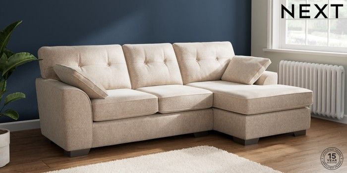 7.2.6 Buy Stamford Buttoned Back Medium Sofa Chaise - Right Hand Cotswold Chenille Light Natural Large Square Angle - Gunmetal from the Next UK online shop Click here to use our accessible website