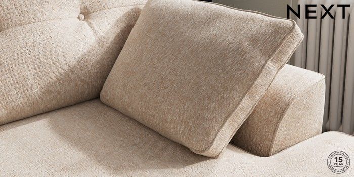 7.2.10 Buy Stamford Buttoned Back Medium Sofa Chaise - Right Hand Cotswold Chenille Light Natural Large Square Angle - Light from the Next UK online shop Click here to use our accessible website