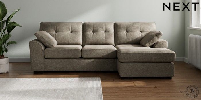 7.2.6 Buy Stamford Buttoned Back Medium Sofa Chaise - Right Hand Cotswold Chenille Mid Mink Brown Large Square Angle - Dark from the Next UK online shop Click here to use our accessible website