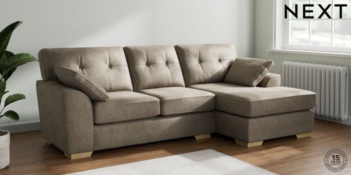 7.2.6 Buy Stamford Buttoned Back Medium Sofa Chaise - Right Hand Cotswold Chenille Mid Mink Brown Large Square Angle - Light from the Next UK online shop Click here to use our accessible website