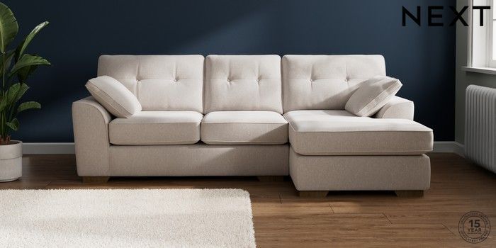 7.2.10 Buy Stamford Buttoned Back Medium Sofa Chaise - Right Hand Cotswold Chenille Oyster Large Square Angle - Mid from the Next UK online shop Click here to use our accessible website