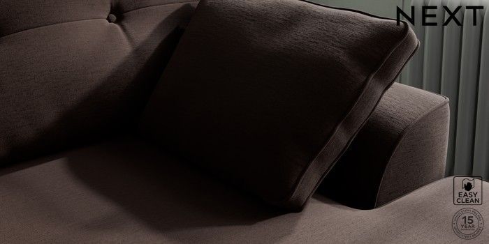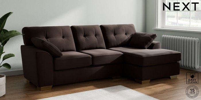 7.2.10 Buy Stamford Buttoned Back Medium Sofa Chaise - Right Hand Fine Chenille Easy Clean Chocolate Brown Large Square Angle - Brushed Brass from the Next UK online shop Click here to use our accessible website