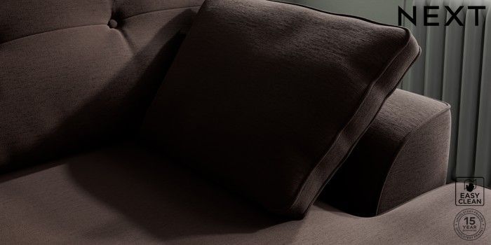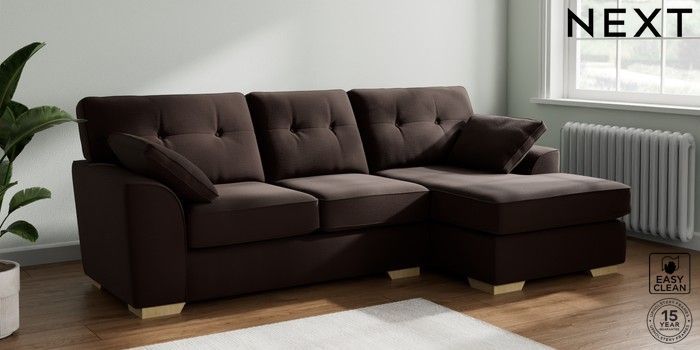 7.2.10 Buy Stamford Buttoned Back Medium Sofa Chaise - Right Hand Fine Chenille Easy Clean Chocolate Brown Large Square Angle - Light from the Next UK online shop Click here to use our accessible website