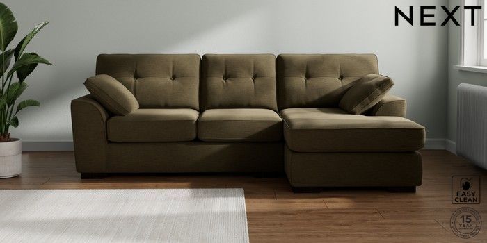 7.2.10 Buy Stamford Buttoned Back Medium Sofa Chaise - Right Hand Fine Chenille Easy Clean Dark Moss Green Large Square Angle - Dark from the Next UK online shop Click here to use our accessible website