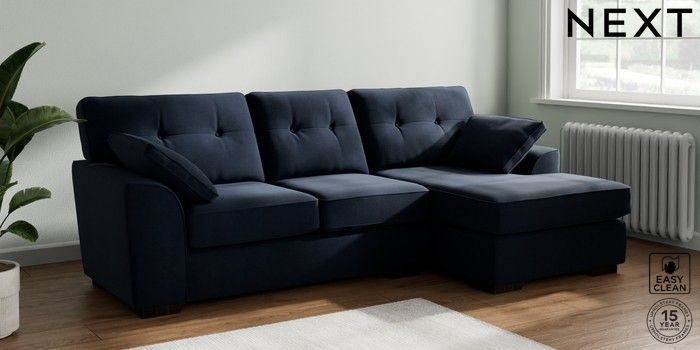 7.2.10 Buy Stamford Buttoned Back Medium Sofa Chaise - Right Hand Fine Chenille Easy Clean Dark Navy Blue Large Square Angle - Dark from the Next UK online shop Click here to use our accessible website