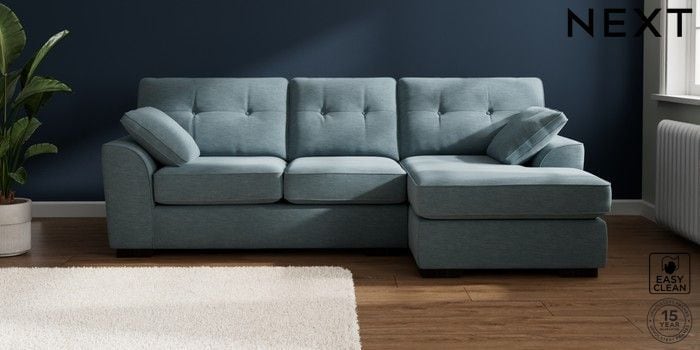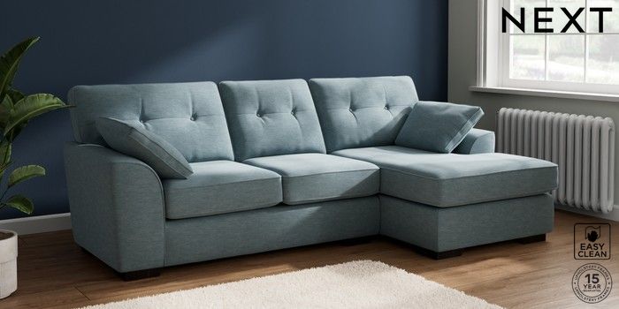 7.2.10 Buy Stamford Buttoned Back Medium Sofa Chaise - Right Hand Fine Chenille Easy Clean Mid Blue Large Square Angle - Dark from the Next UK online shop Click here to use our accessible website