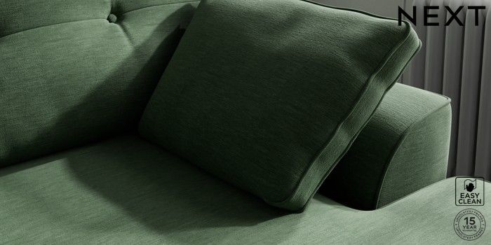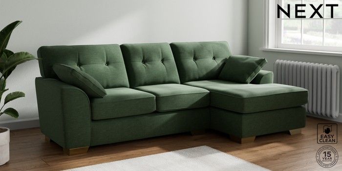 7.2.10 Buy Stamford Buttoned Back Medium Sofa Chaise - Right Hand Fine Chenille Easy Clean Mid Khaki Green Large Square Angle - Brushed Brass from the Next UK online shop Click here to use our accessible website
