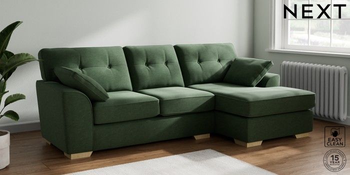7.2.6 Buy Stamford Buttoned Back Medium Sofa Chaise - Right Hand Fine Chenille Easy Clean Mid Khaki Green Large Square Angle - Light from the Next UK online shop Click here to use our accessible website