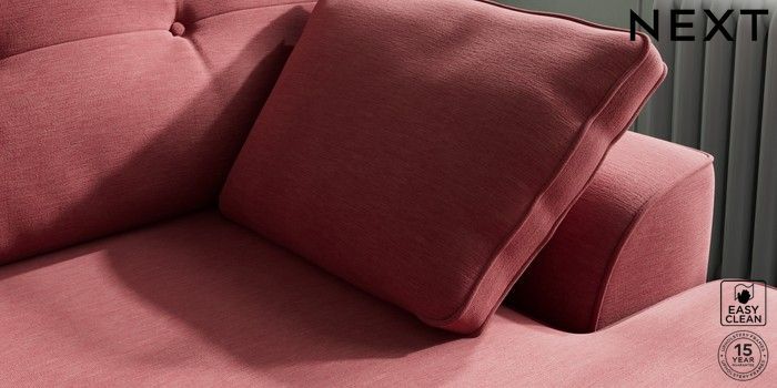 7.2.10 Buy Stamford Buttoned Back Medium Sofa Chaise - Right Hand Fine Chenille Easy Clean Mid Pink Large Square Angle - Chrome Metal from the Next UK online shop Click here to use our accessible website
